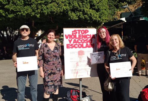 Durante un mes, activistas y personas voluntarias de Fundación SOYCOMOTÚ han preparado una acción a pie de calle para sensibilizar sobre un tema tan complejo como el del acoso escolar, también como bullying.