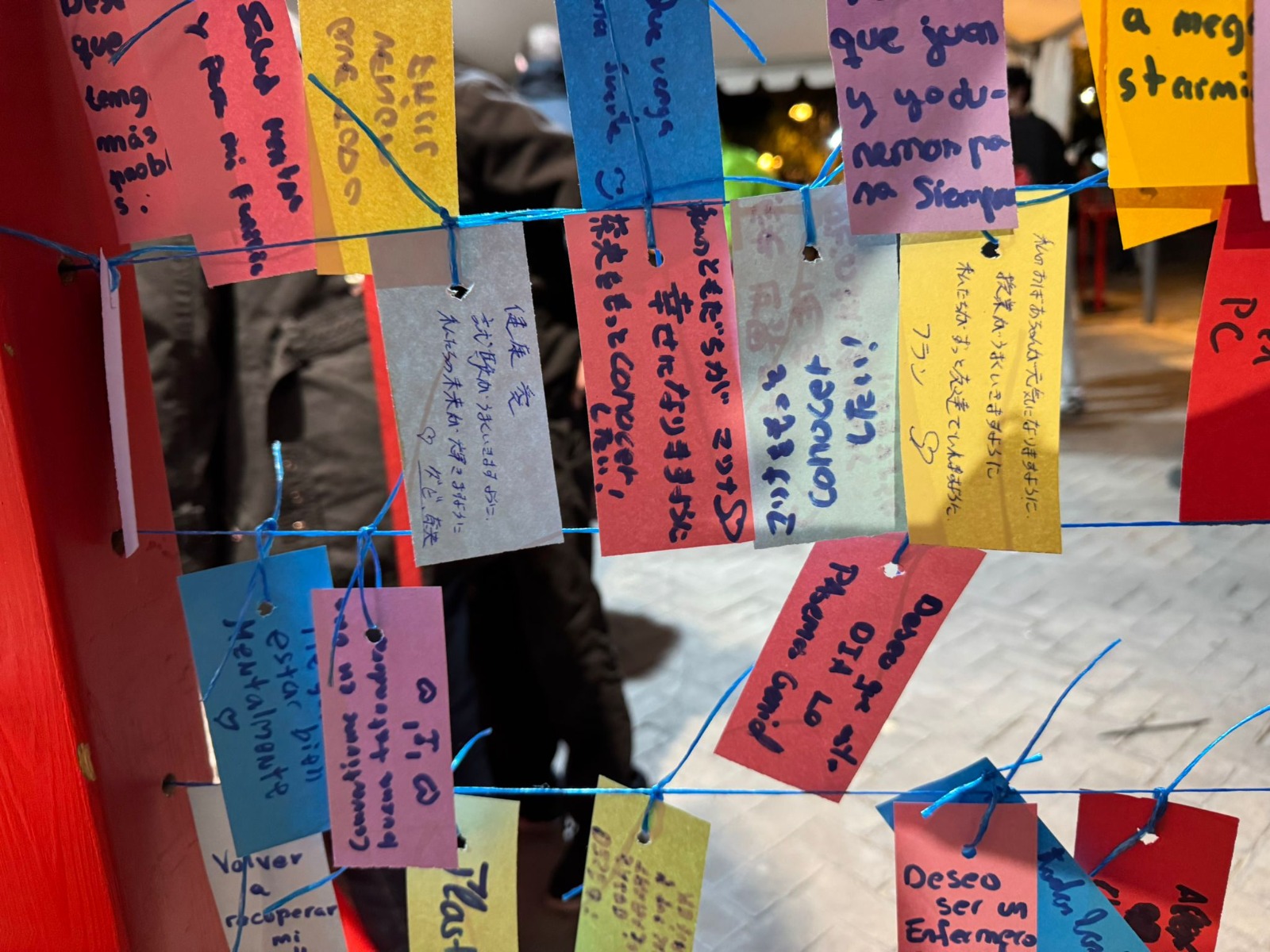 Durante la visita, los asistentes también tuvieron la oportunidad de vestirse con kimonos tradicionales, con el acompañamiento de la voluntaria Nao, que ofreció asesoramiento para colocarlos correctamente. Además, se realizó una actividad inspirada en los matsuri japoneses, en la que cada persona escribió un deseo, siguiendo la tradición de colgar mensajes o propósitos.