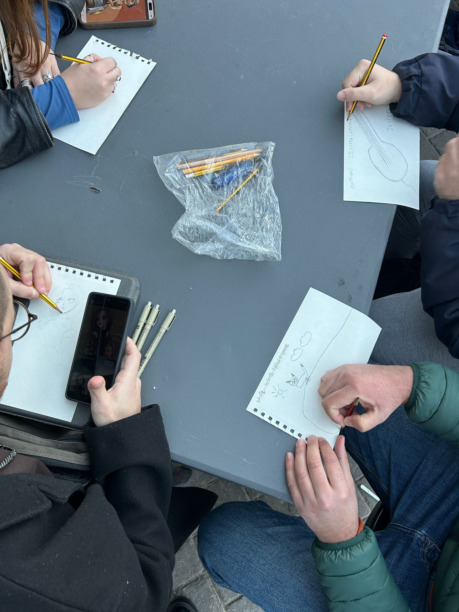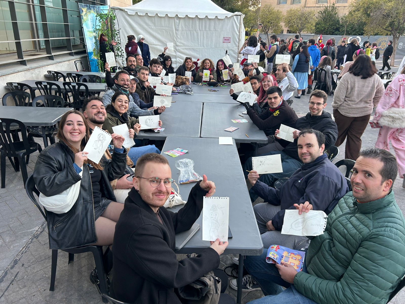 La jornada comenzó con una dinámica orientada a conocernos entre todos. Por parejas aleatorias, cada persona habló con su compañero de sus gustos, aficiones o cosas que le apasionan. Después, cada uno trató de dibujar algo relacionado con esos gustos y se lo regaló a su pareja. Fue una forma sencilla, pero muy efectiva, de conocernos mejor, crear lazos y llevarnos al final un pequeño detalle hecho a mano.