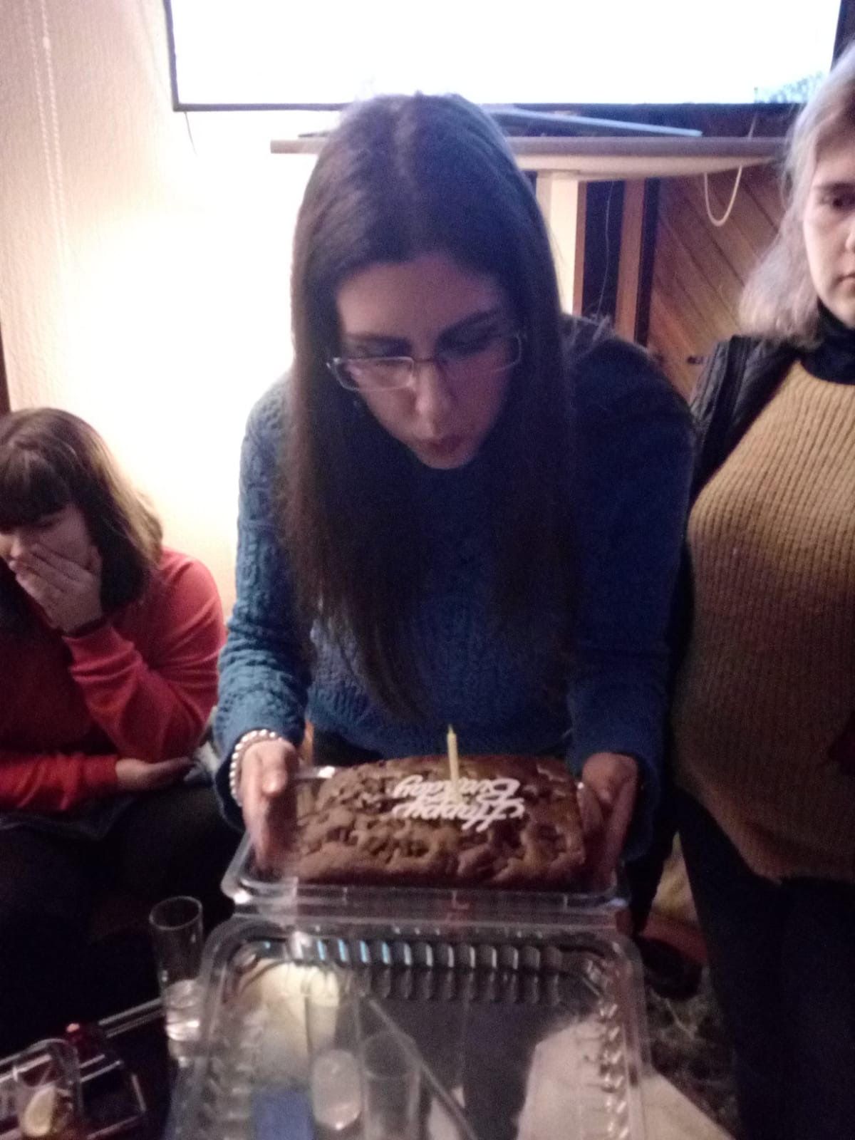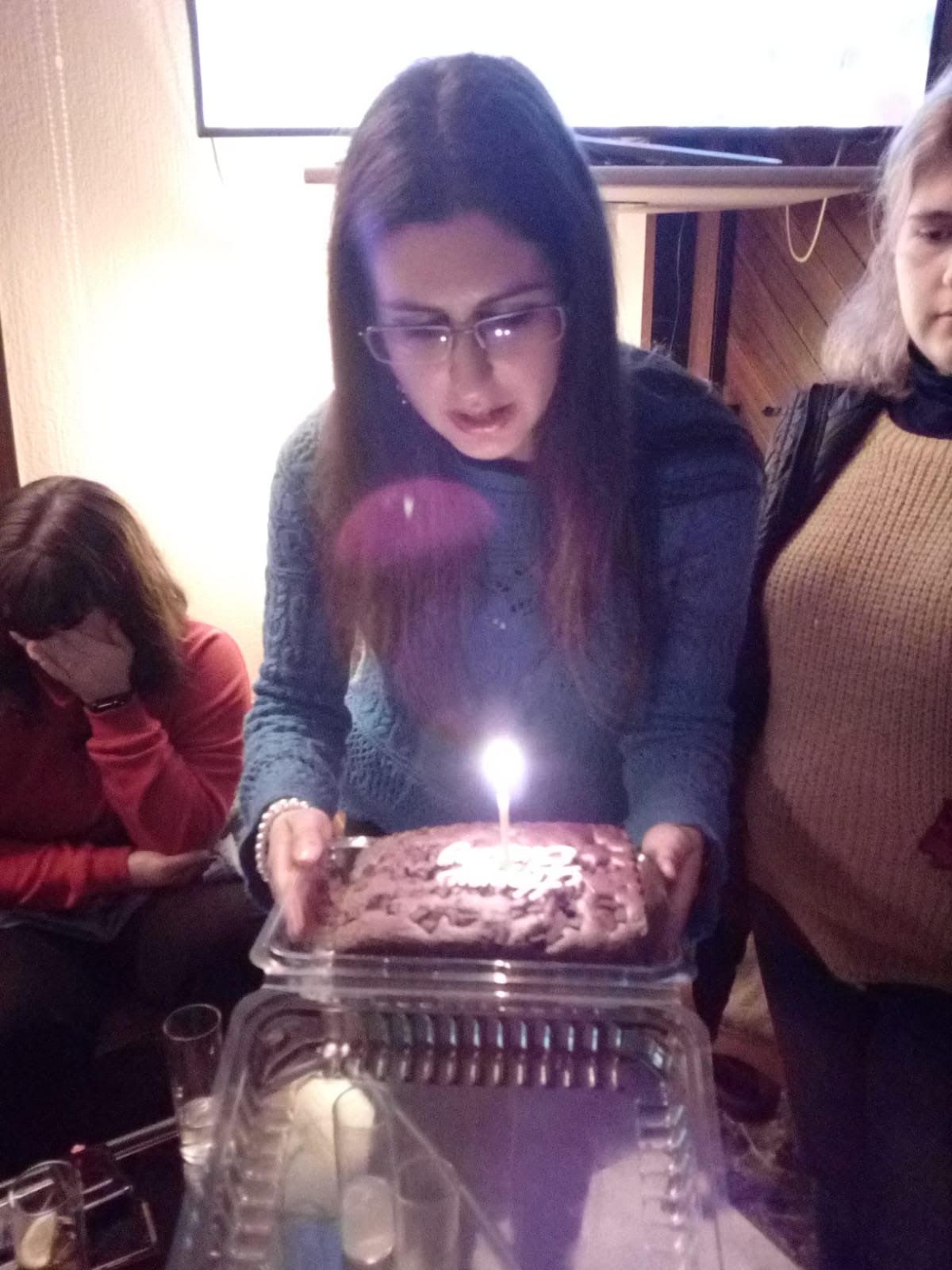 Luego sorprendimos- es un decir, -siempre nos pillan🥺- a la compi Maria Isabel cantándole el cumple ya que, el lunes 28 de enero es su cumple y, en un delicioso bizcocho de chocolate es donde se pusieron las velas.