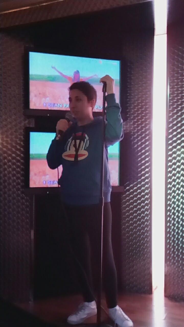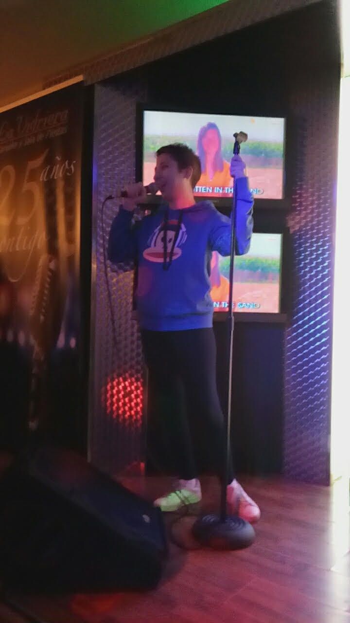 Entramos finalmente, a un karaoke del Carmen.