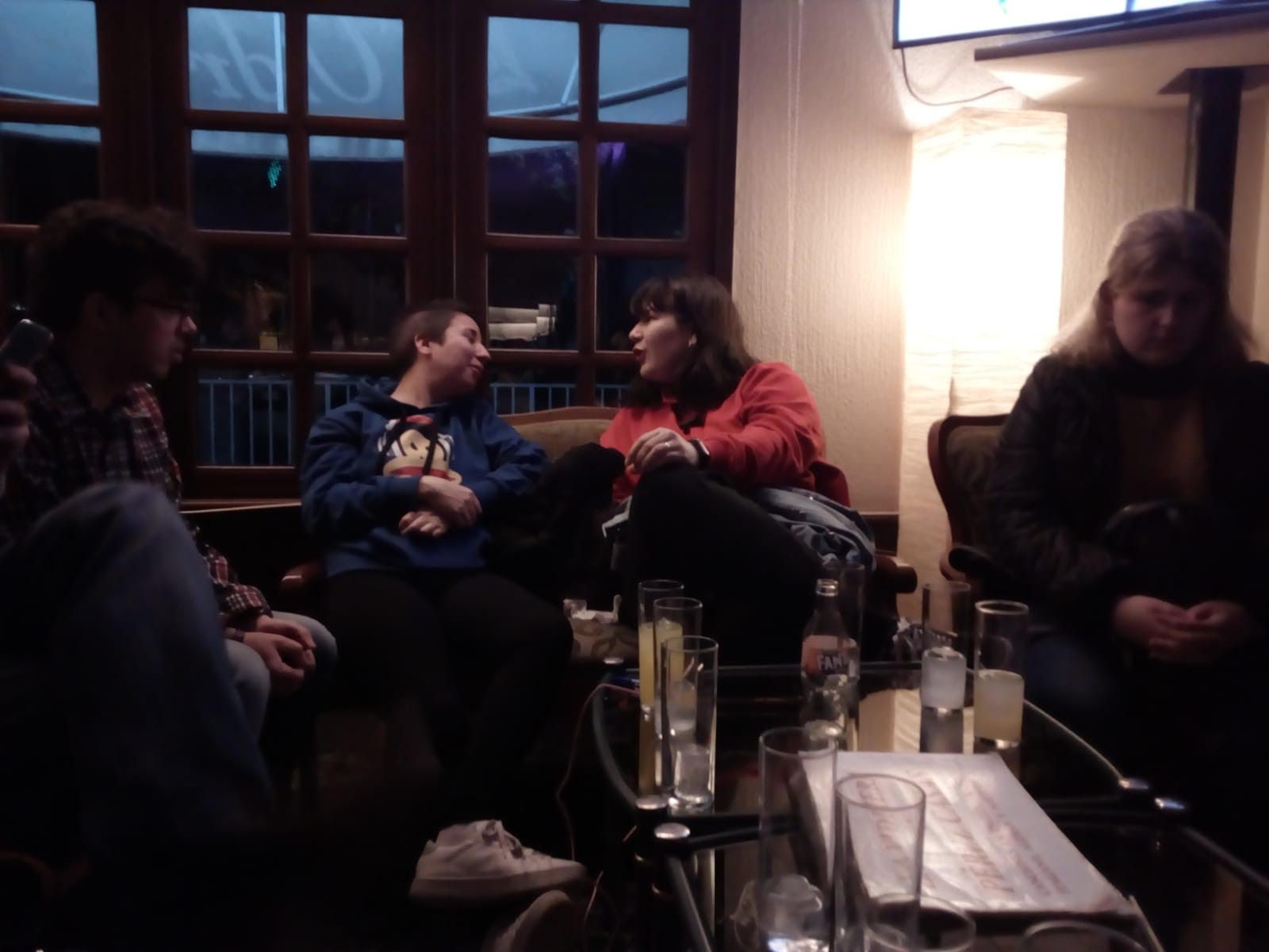 Esperando a los compis, nos saludamos y nos pusimos de camino hacia el karaoke.