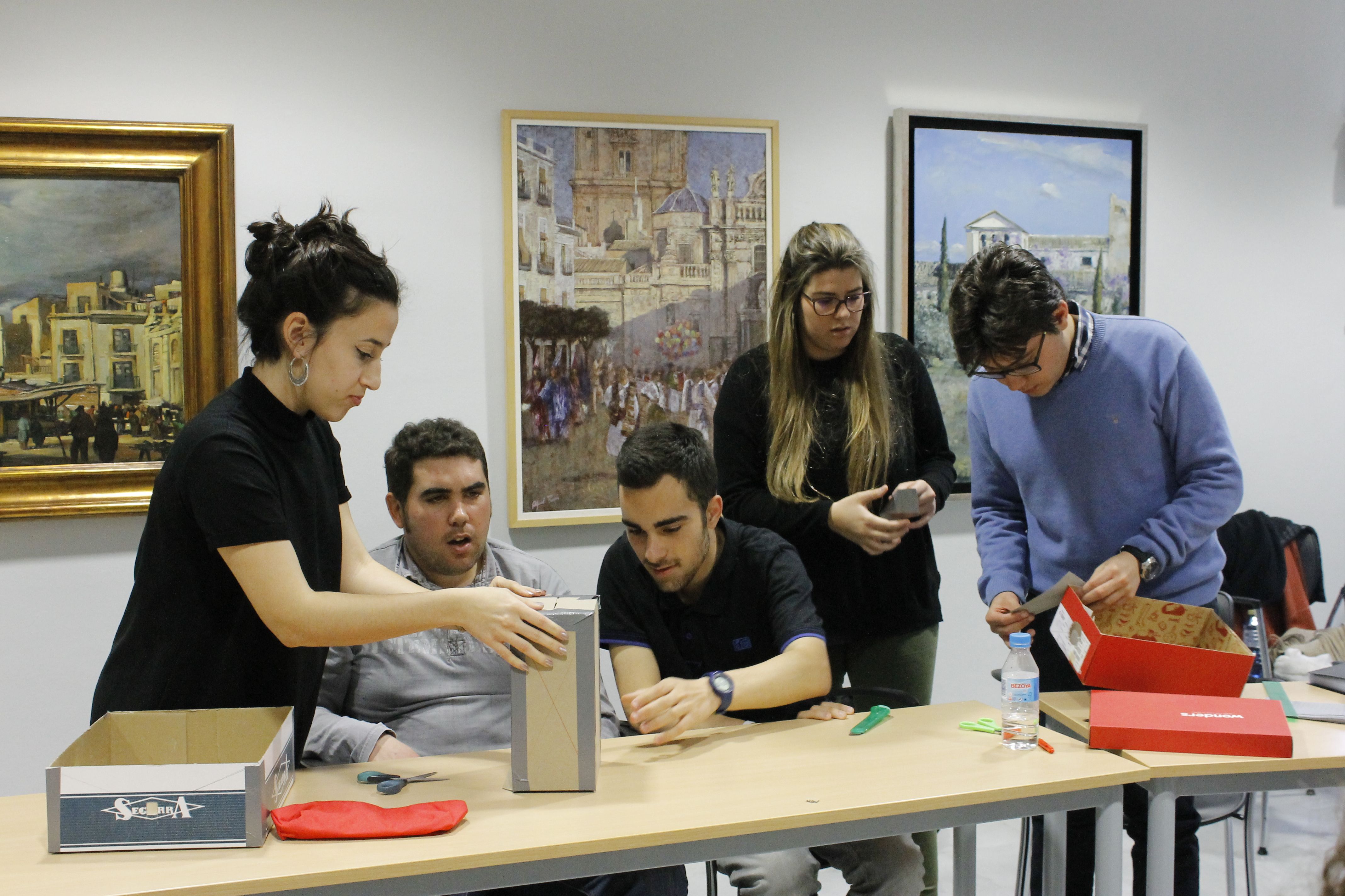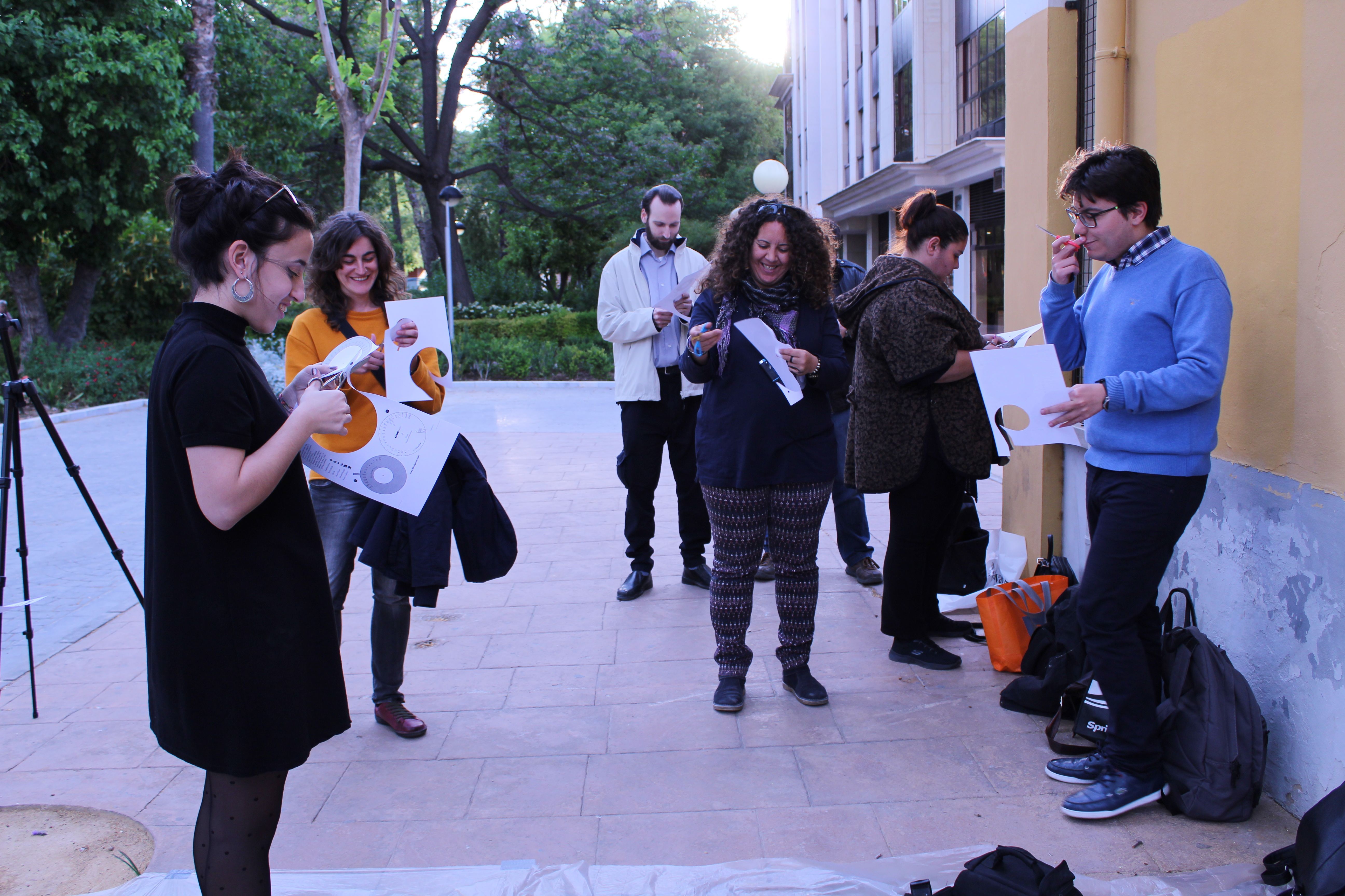 Para realizar la primera clase, quedamos a las 5 de la tarde en el Museo de la Ciudad de Murcia dónde le dimos la bienvenida a las alumnas de Bellas Artes. Muy motivadas e ilusionadas con este proyecto, se presentaron, contaron el motivo por el que estaban allí, la asignatura: “Concepto, pensamiento y discurso del arte”. Los participantes también se presentaron y expusieron las inquietudes que les llevaban a estar en este taller de la Fundación SoyComotu . Nos adentramos en los orígenes de la fotografía, la cámara oscura y sus precursores, y nos explicaron paso a paso cómo se construye una cámara estenopeica, desde un punto de vista experimental.