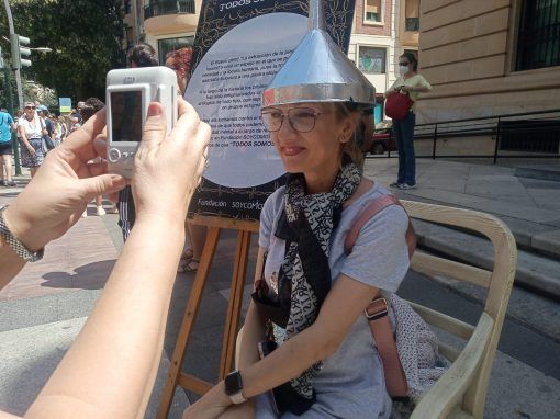 Fue una mañana muy emotiva y, a pesar del calor, hubo ciudadanos que visitaron los stands de la Feria de Asociaciones hasta casi las 14:00 h., mostrando una gran sensibilidad e interés hacia las labores que desempeñamos en el ámbito de la salud mental. Cumplimos nuestro reto: llenar el panel con 66 fotografías de personas que dieron la cara por la salud mental, fotografiándose sentados en un sillón con un embudo plateado en la cabeza, simbolizando, de este modo, que todos somos piedra, todos podemos atravesar por un problema de salud mental a lo largo de nuestra vida y ello no nos hace inferiores, ni debe ser motivo de discriminación y/o exclusión social, laboral y escolar.