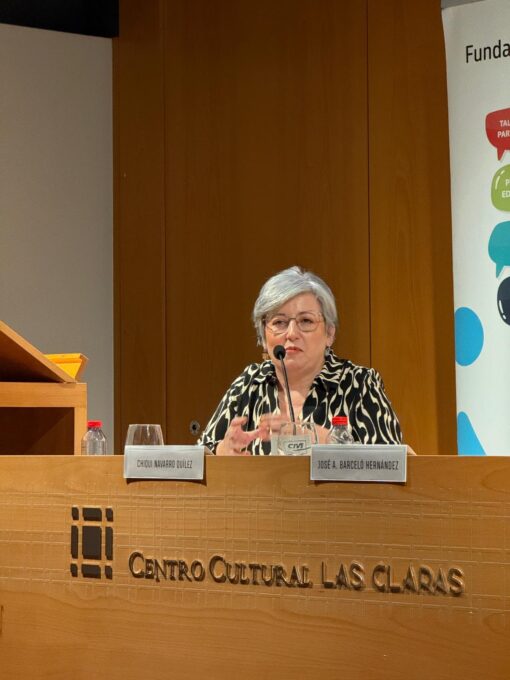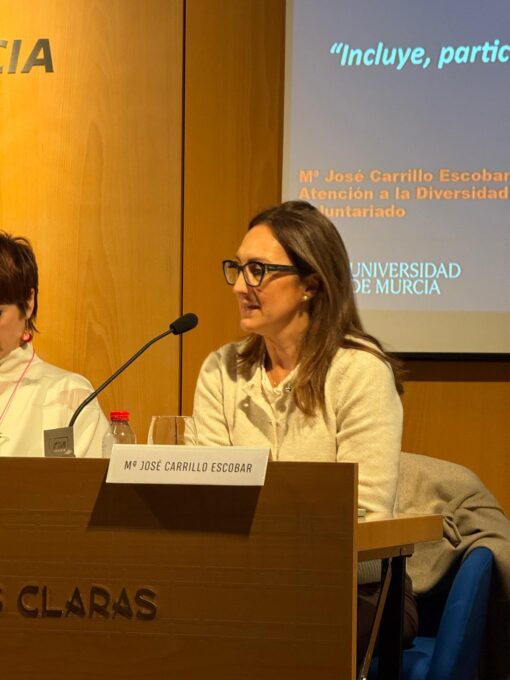 Mª José Carrillo Escobar, Técnico de Atención a la Diversidad y Voluntariado del Servicio de Atención a la Diversidad y Voluntariado de la Universidad de Murcia. Nos habló la importancia que supone hacer parte a los estudiantes de estas entidades del tercer sector y de la gran variedad de voluntariados disponible en la Región de Murcia.