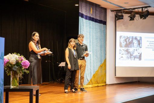 Lucía Marco y María Santiago, docentes del programa de formación y Ana Palazón, coordinadora del programa educativo entregaron los diplomas y las guías docentes.