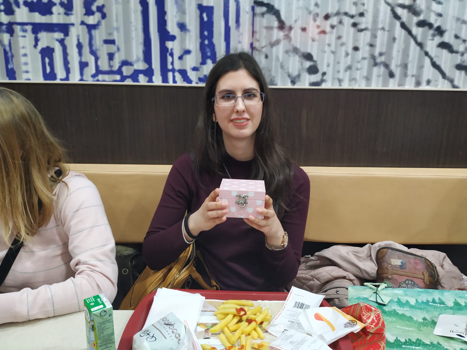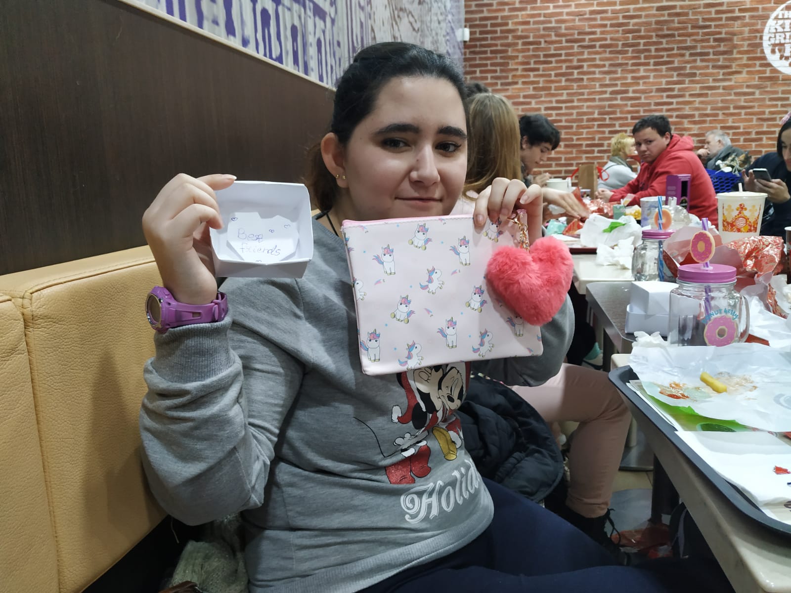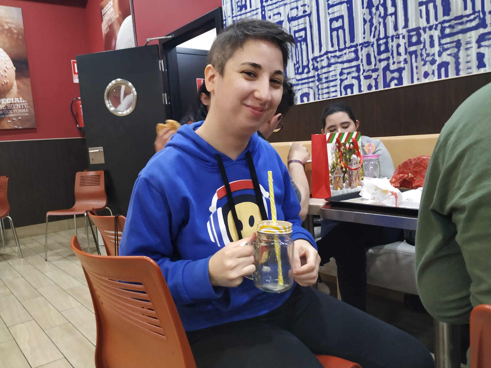 Me encantó la cooperación para elegir el regalo, la entrega de regalos, las fotos de recuerdo y la cena en el burger.con gente tan maja.