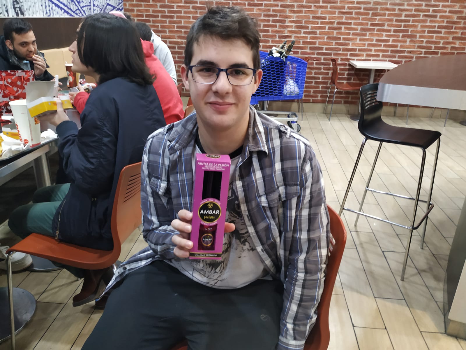 Fran fue sorprendido con un incienso aromático oriental y David con un juego de mesa, ” Cuatro en raya” tanto le gustó que rápidamente lo abrió y comenzó a jugar.