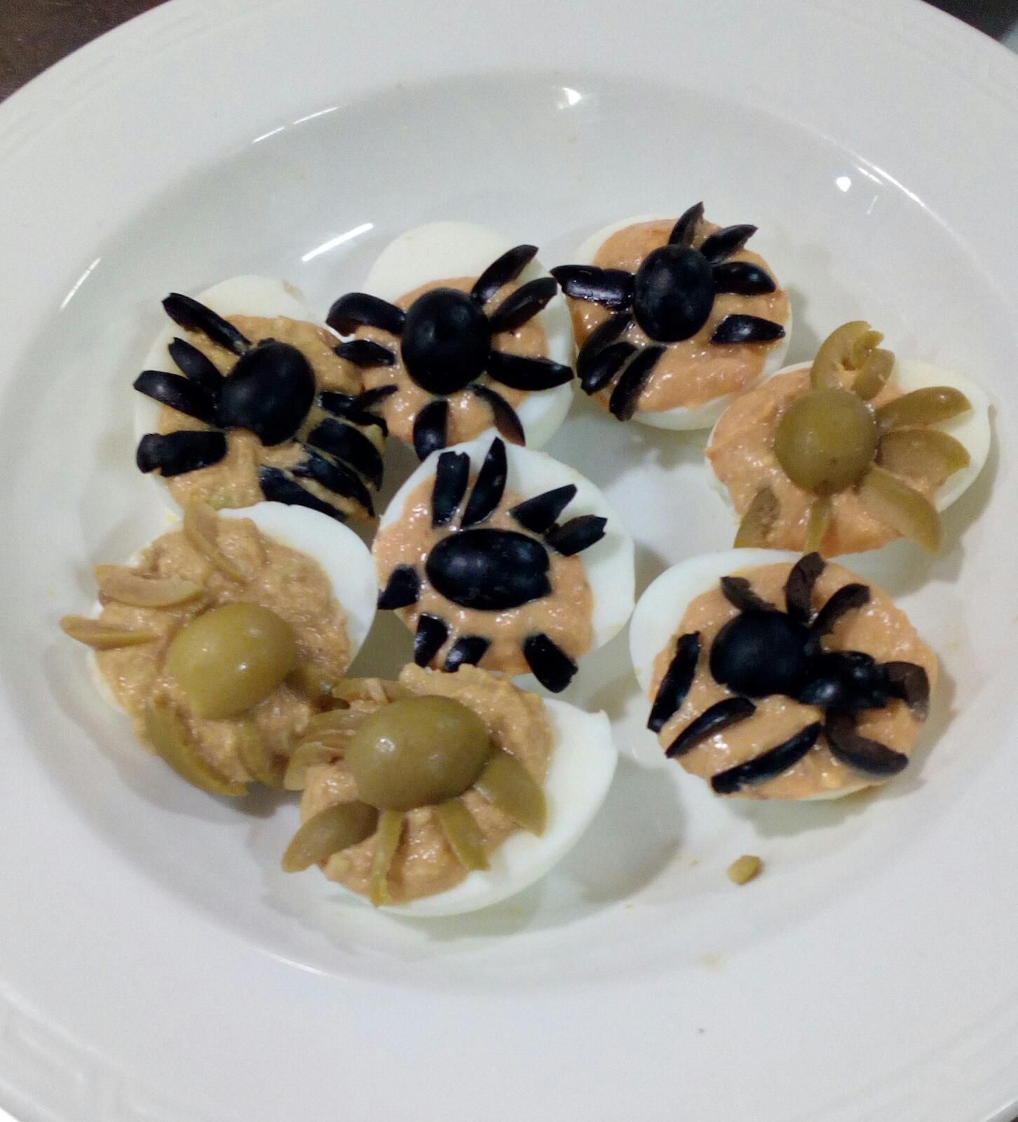 Tres de los platos cocinados por los participantes, huevos de araña y rana, mugcake de calabaza y momias de salchicha. Fotografías realizadas por Raquel Hita, participante del Taller.