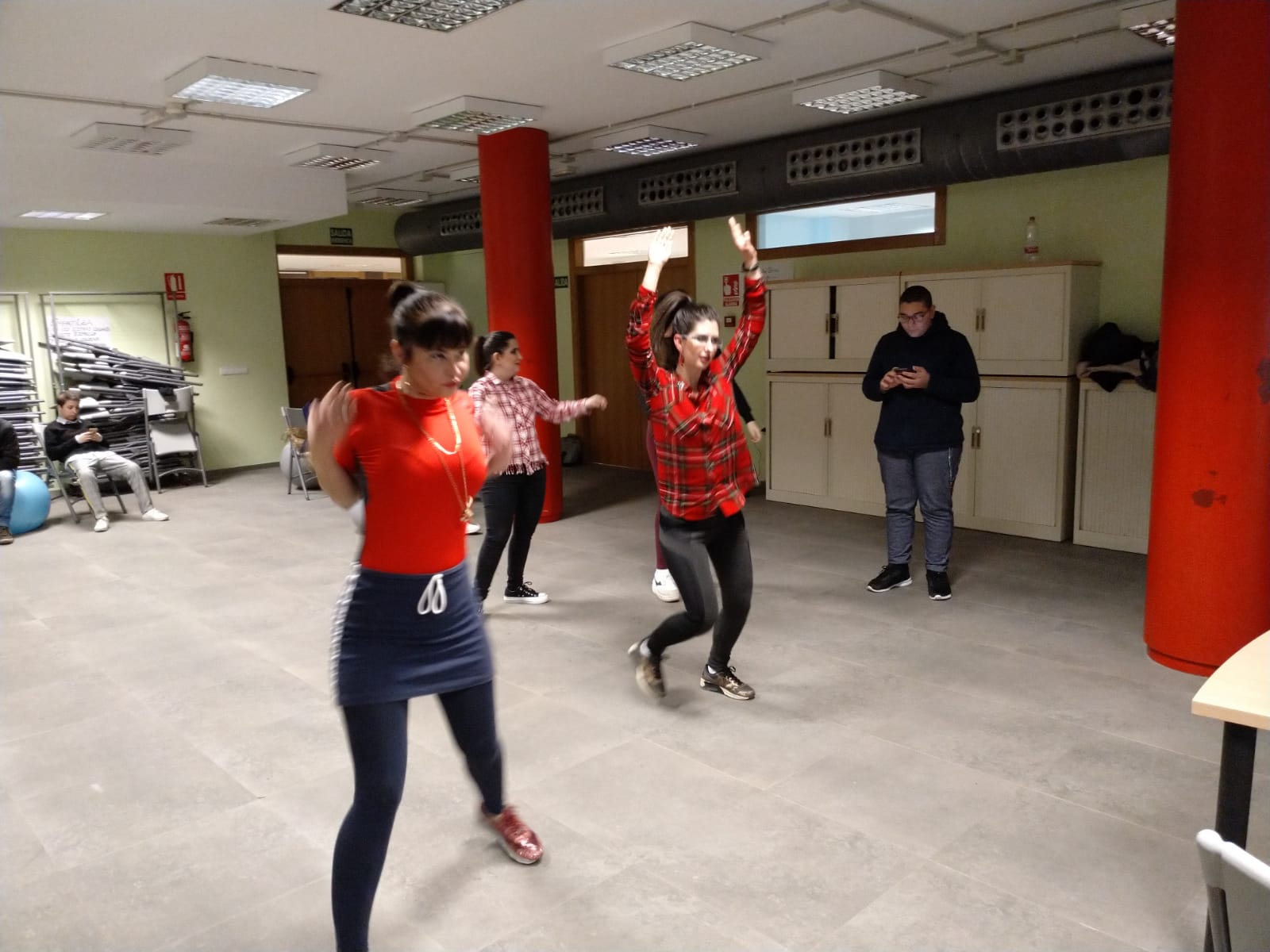 Por eso a María Isabel se le ocurrió la idea de que hiciéramos algo de movimiento, en concreto Zumba. Aunque no nos llegamos a coordinar mucho, pues no a todo el mundo le apetecía. Decidimos ir al 585 con pintas de reyes de barrio.