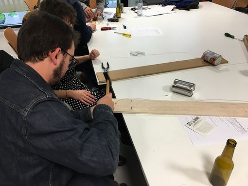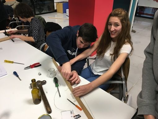 Y esta semana, se han propuesto emular a todos estos personajes, construyendo ellos mismos algunos instrumentos bluseros como el “Diddley Bow” (arco de Diddley), artilugio compuesto por una tabla de madera, una lata de conserva y una cuerda de guitarra, y que se toca deslizando un cuello de botella sobre la cuerda. También un “Washboard” (tabla de lavar), compuesto por un marco de madera, una plancha metálica y campanillas, y que se toca golpeando dedales sobre ella. Tras finalizar su construcción, los participantes comenzaron a tocarlos, y se dieron cuenta de lo adictivo que podía resultar, pues les costó trabajo parar y recoger para volver a casa.