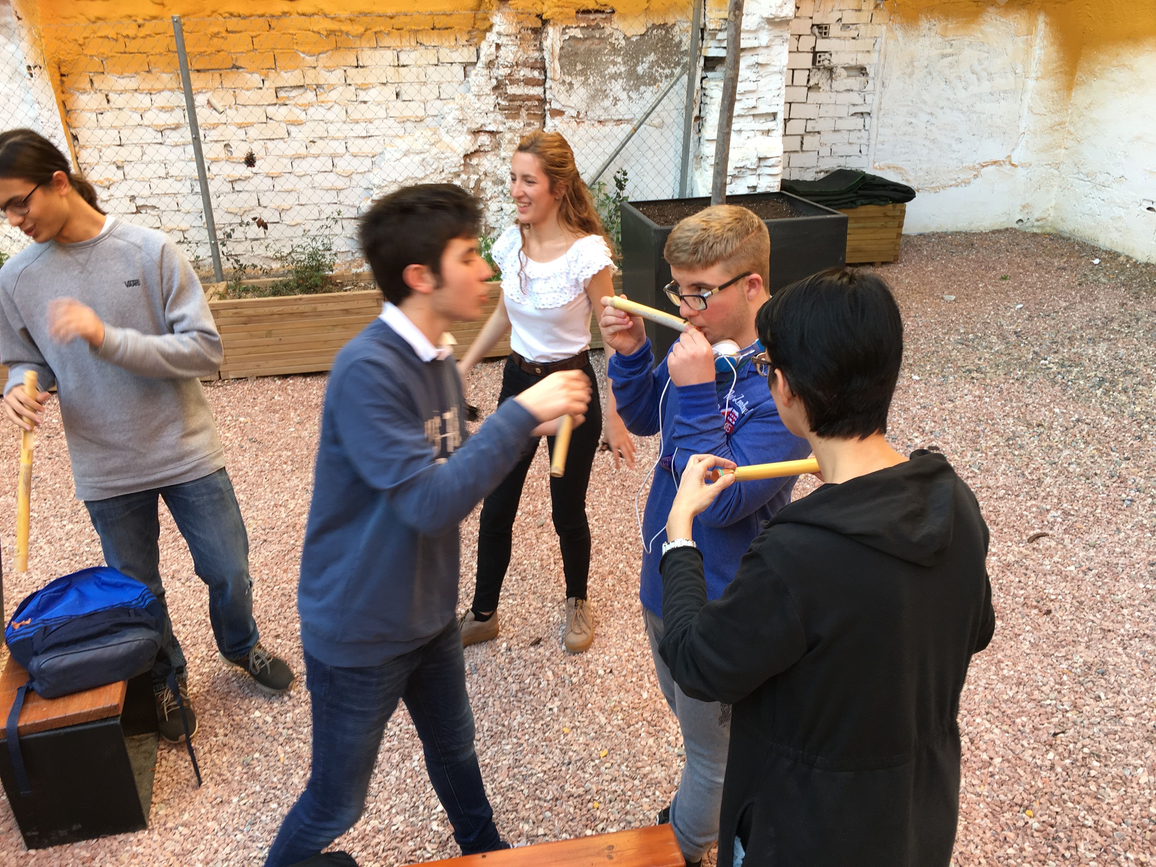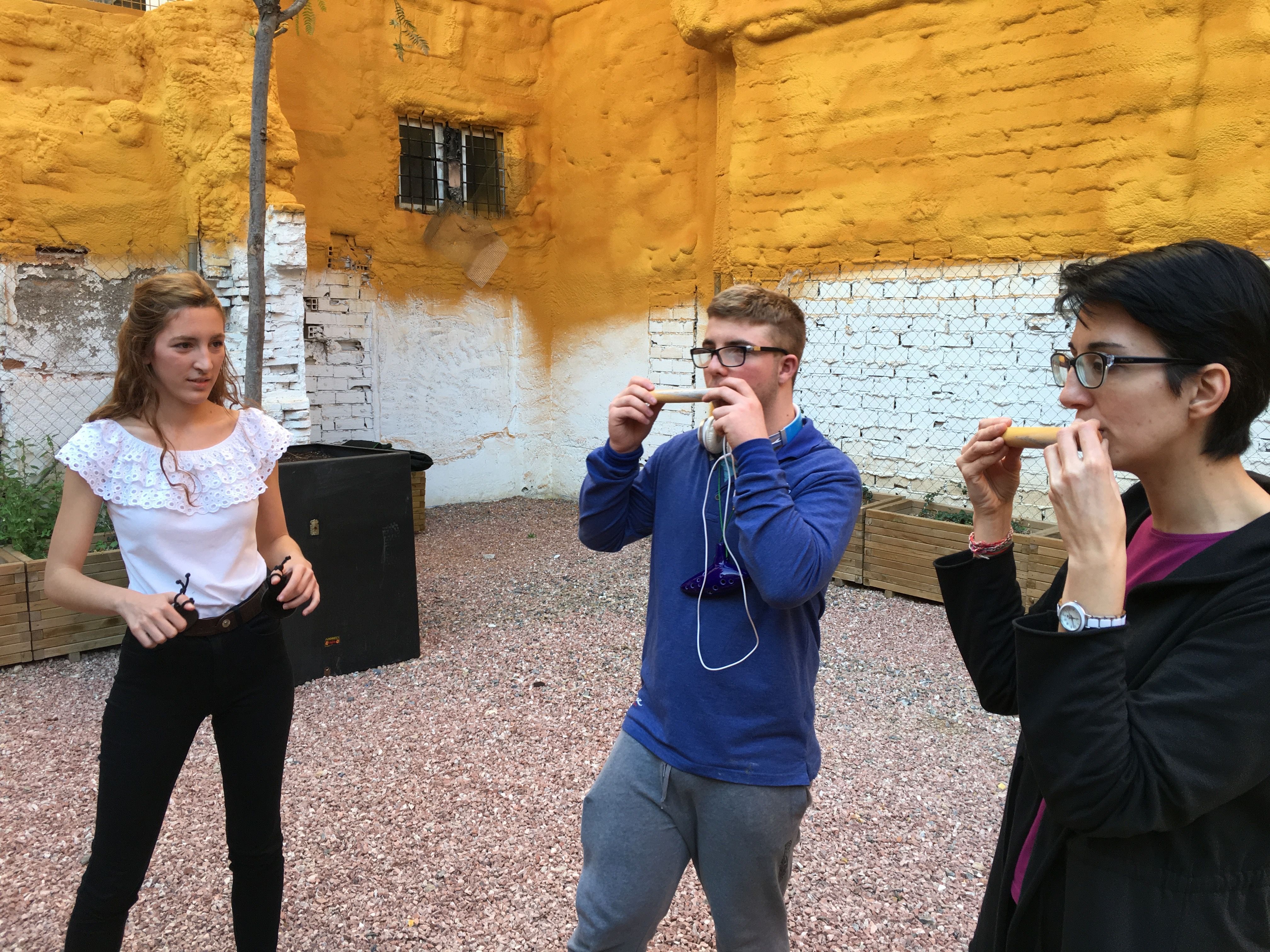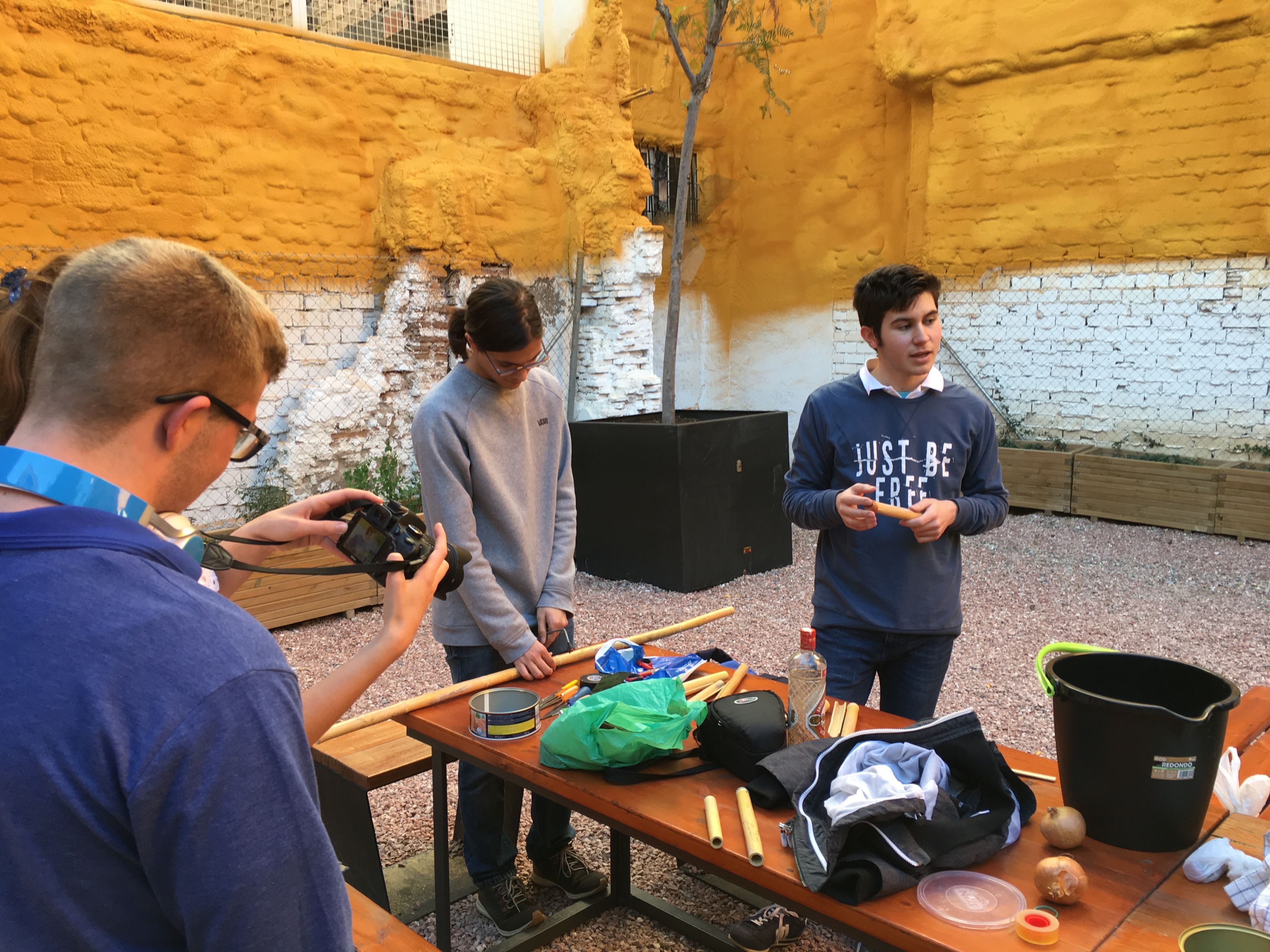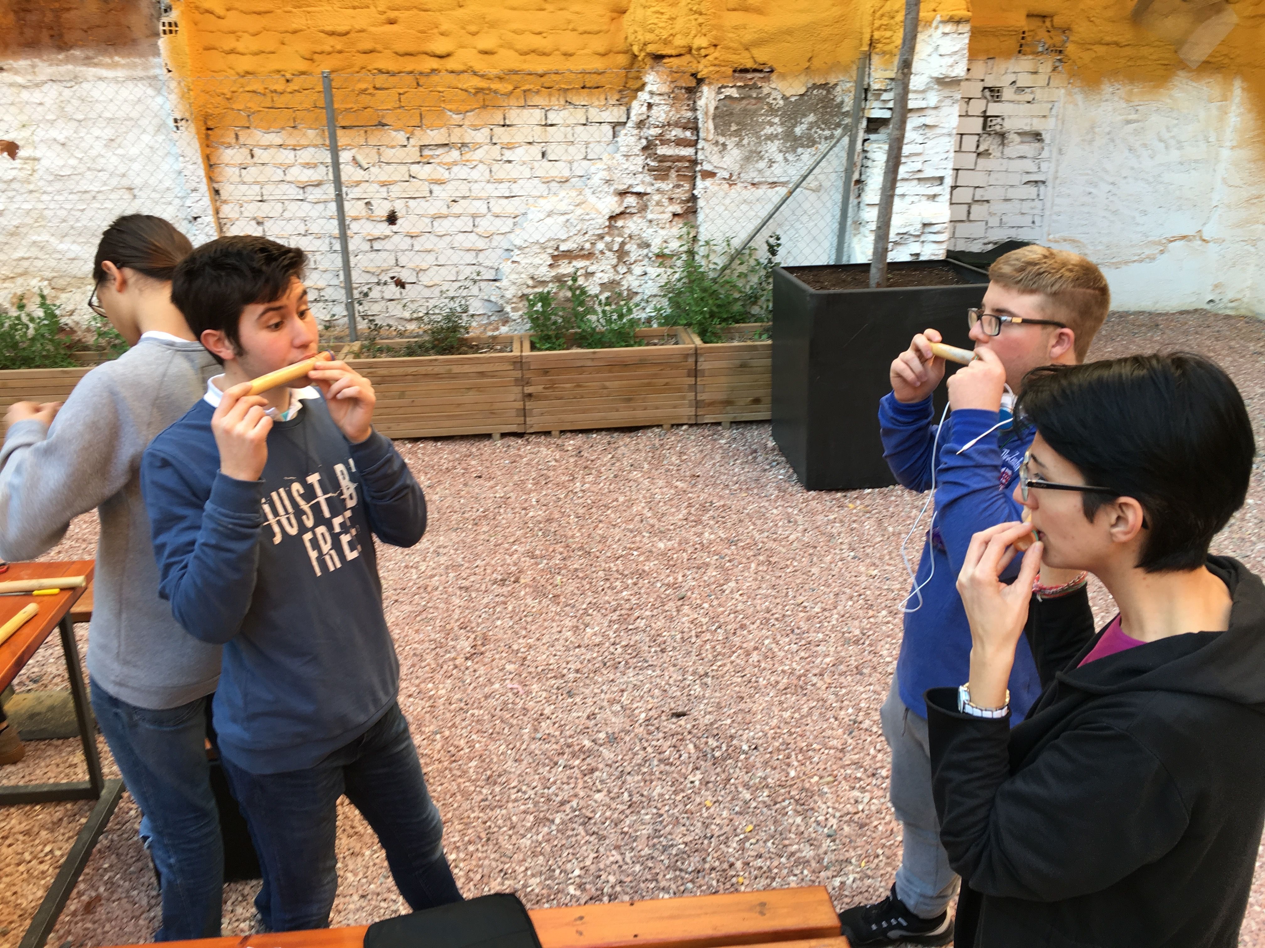 Allí fabricaron instrumentos típicos de la Huerta valiéndose de materiales poco convencionales, algo a lo que ya están sobradamente acostumbrados. Por ejemplo, fabricaron panderetas con latas gigantes de atún. También fabricaron pitos de caña de carnaval con cañas y cebollas. Y por supuesto, tuvieron la oportunidad de descubrir las famosas carrascletas y el rascador con la botella de anís del mono. Una vez fabricados los instrumentos, los participantes pudieron interpretar música típica de la Huerta, entre ellas, una nana huertana.