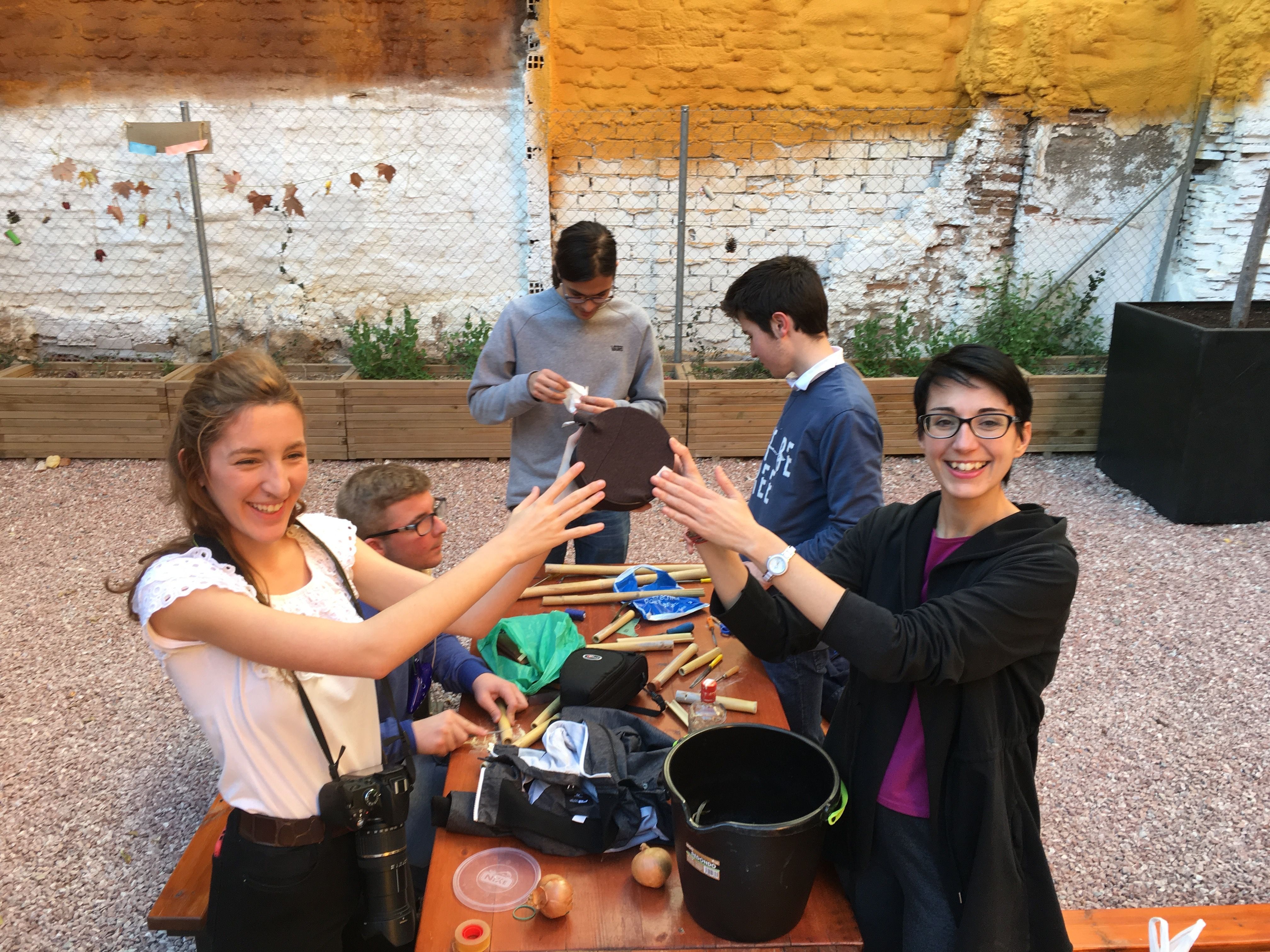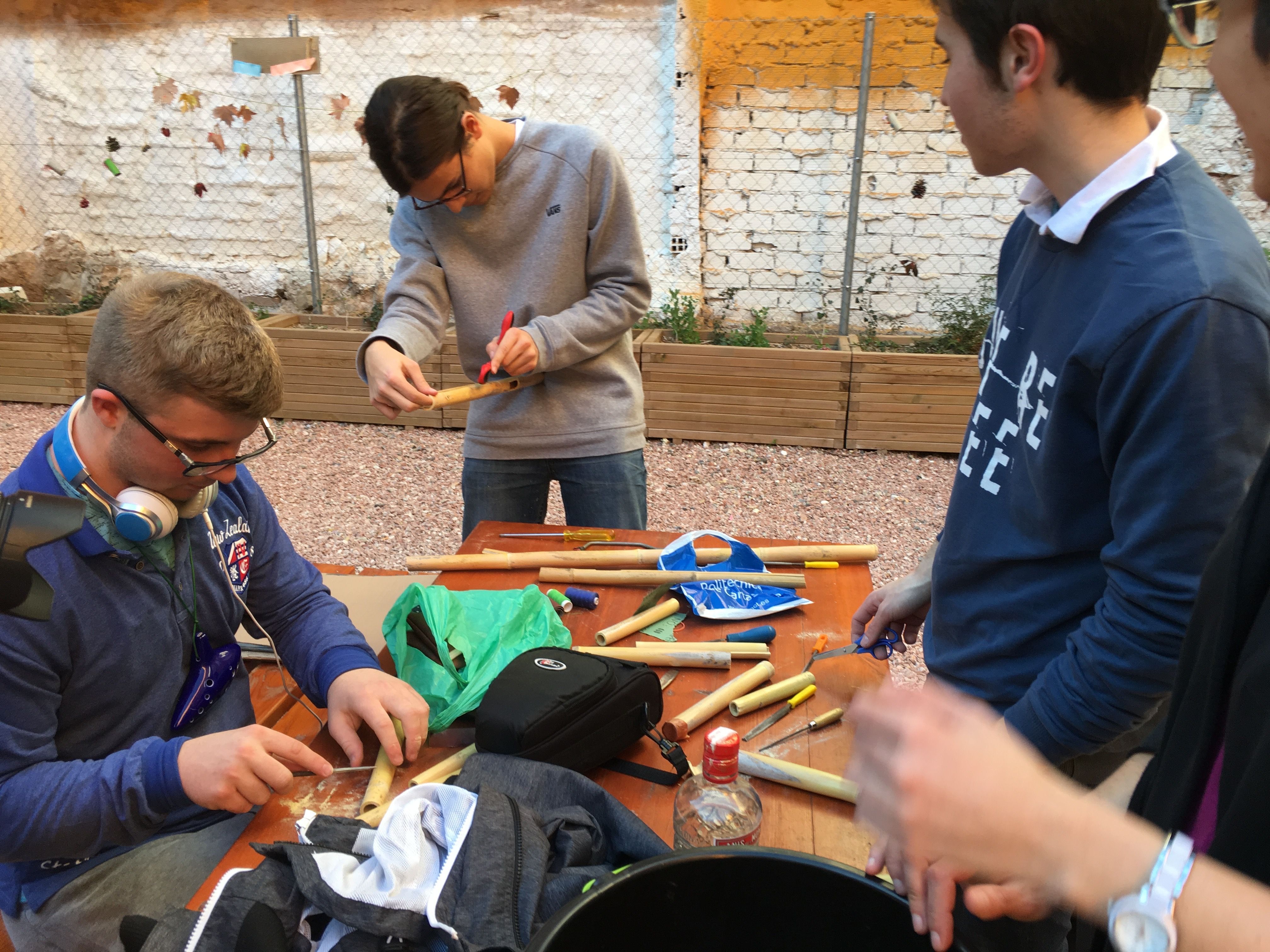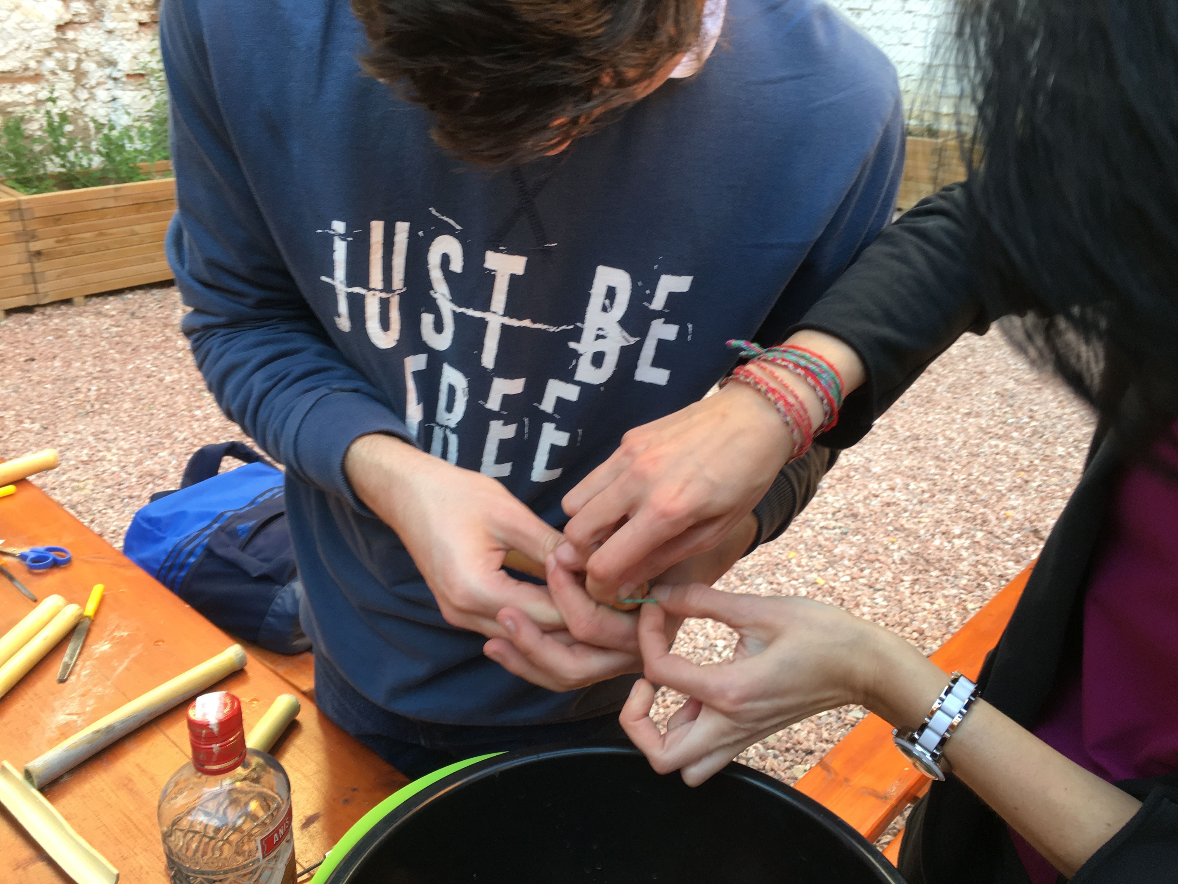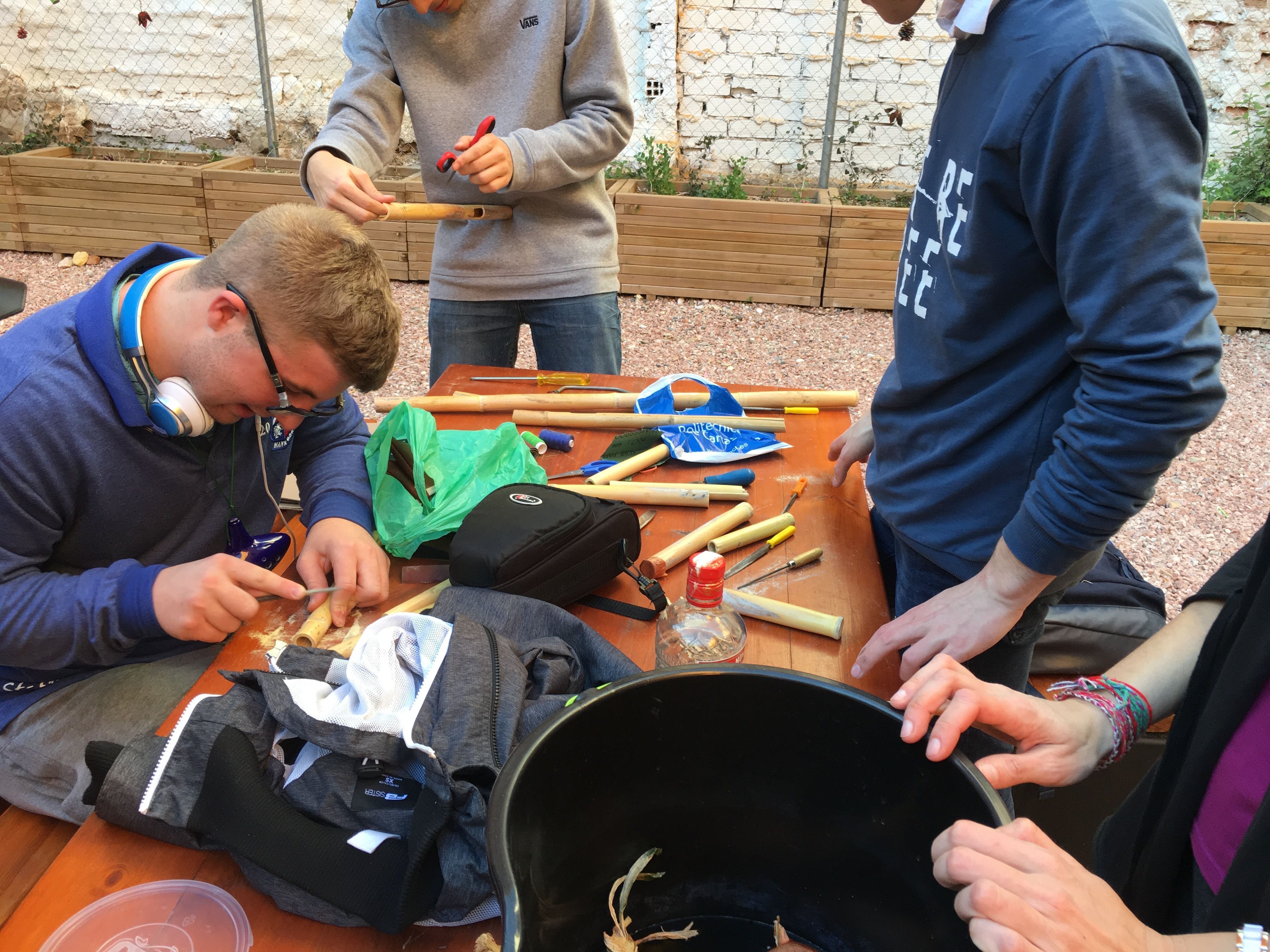 Allí fabricaron instrumentos típicos de la Huerta valiéndose de materiales poco convencionales, algo a lo que ya están sobradamente acostumbrados. Por ejemplo, fabricaron panderetas con latas gigantes de atún. También fabricaron pitos de caña de carnaval con cañas y cebollas. Y por supuesto, tuvieron la oportunidad de descubrir las famosas carrascletas y el rascador con la botella de anís del mono. Una vez fabricados los instrumentos, los participantes pudieron interpretar música típica de la Huerta, entre ellas, una nana huertana.
